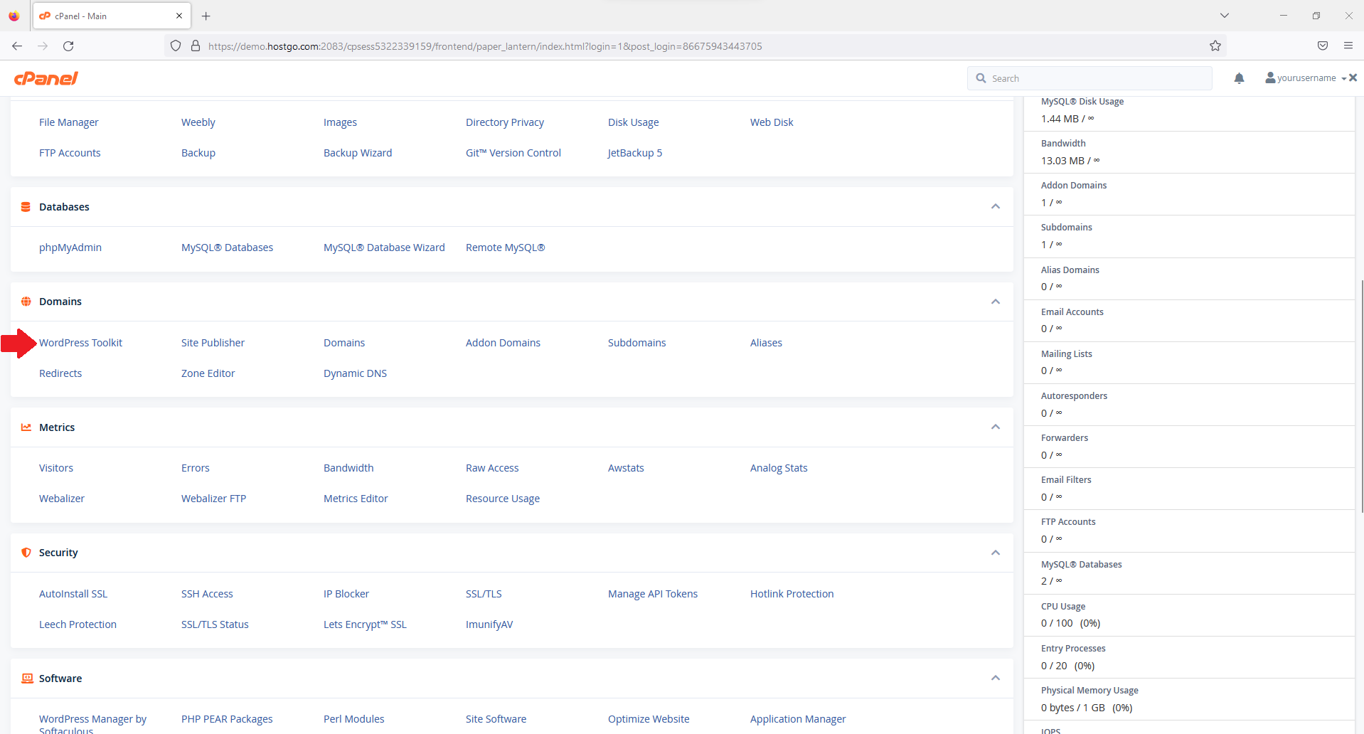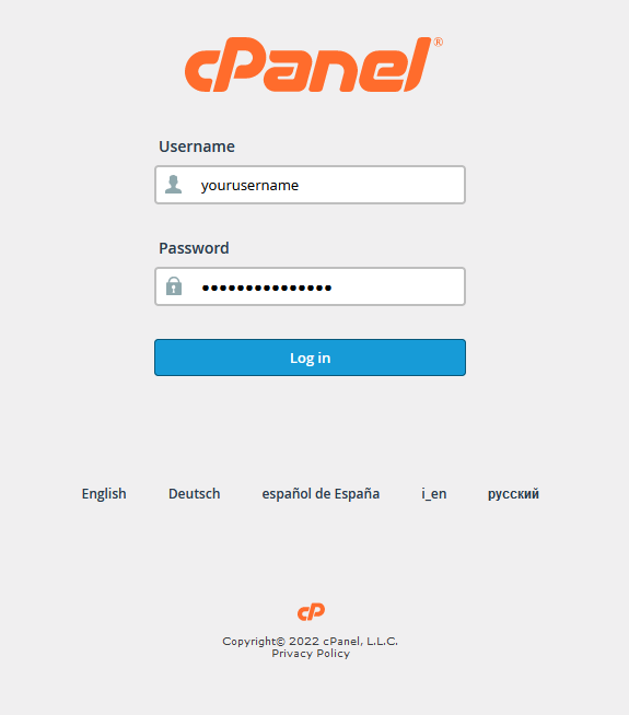 URL: https://yourdomain/cpanel (change your domain out for your actual domain name)